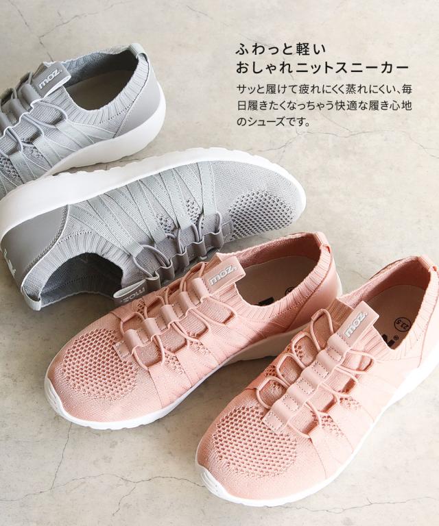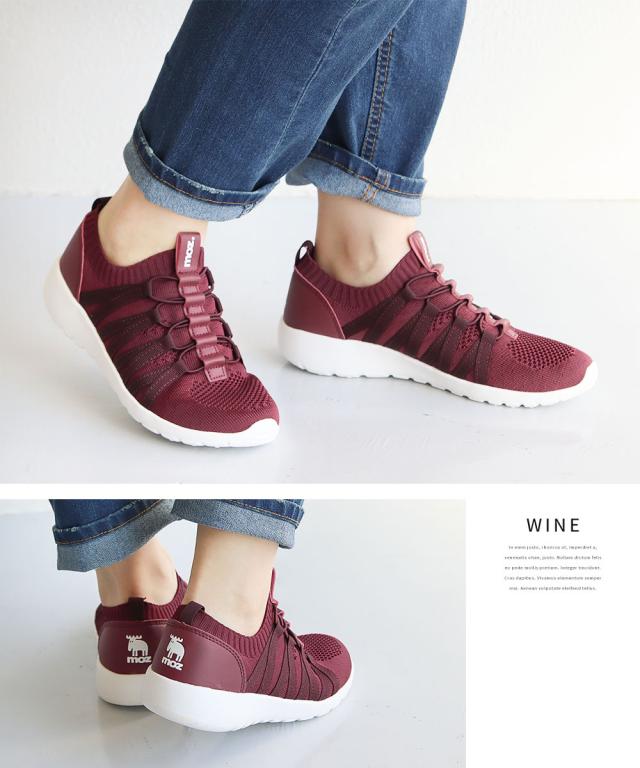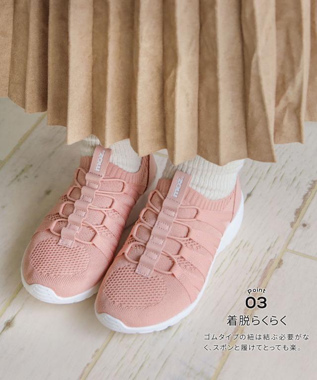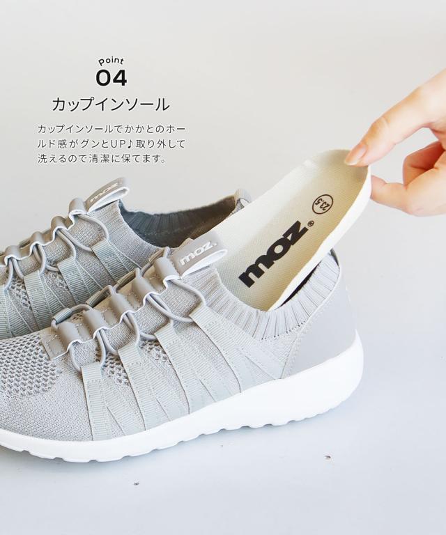 モズ moz スリッポン レディース 軽量 幅広 履きやすい メッシュ 軽い シンプル おしゃれ かわいい ブランド ジュニア シューズ 通勤 通学 ニットシューズ フィットネス クッション インソール 蒸れにくい 通気性 黒 赤 ブラック グレー ネイビー ワイン ピンク 61801