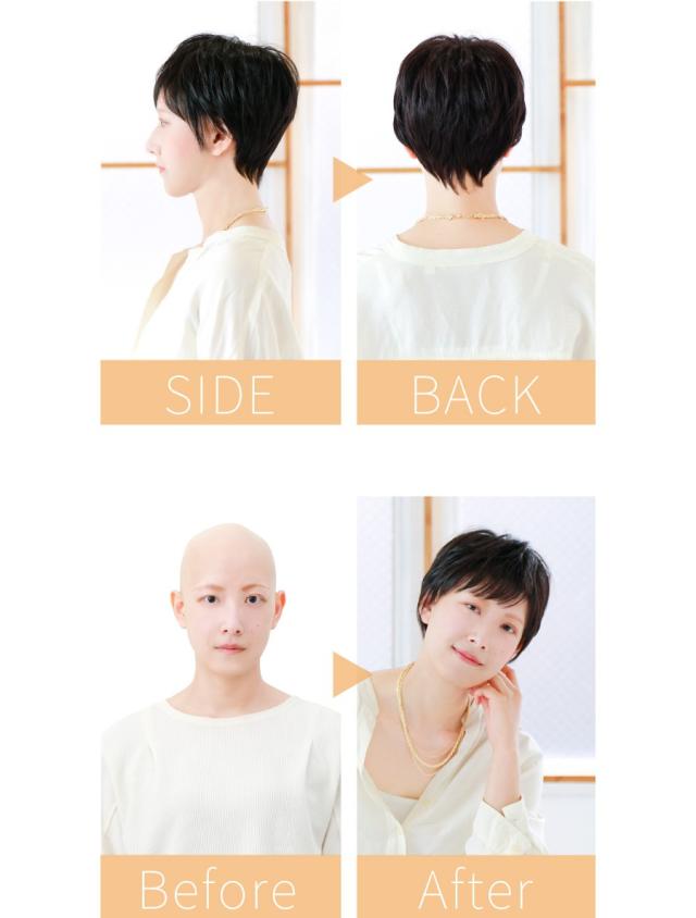 自毛をまったく見せずにスッポリかぶる「かつら」タイプのウィッグ。