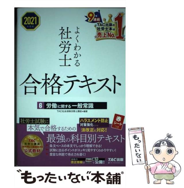 商品名:【中古】 よくわかる社労士合格テキスト 2021年度版6 労働に関する一般常識 / TAC株式会社(社会保険労務士講座) / TAC株式会社出版事業部 [単行本(ソフトカバー)]【メール便送料無料】