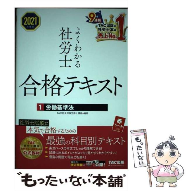 商品名:【中古】 よくわかる社労士合格テキスト 2021年度版1 労働基準法 / TAC株式会社(社会保険労務士講座) / TAC株式会社出版事業部 [単行本(ソフトカバー)]【メール便送料無料】