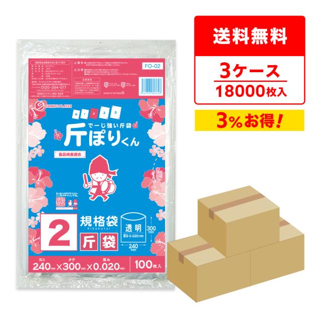 【まとめて3ケース】FO-02-3 斤袋 2斤サイズ 0.020mm厚 透明 100枚x60冊x3箱 食品検査適合 RoHS指定 代引不可