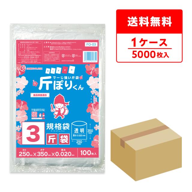 FO-03 斤袋 3斤サイズ 0.020mm厚 透明 100枚x50冊 食品検査適合 RoHS指定 代引不可