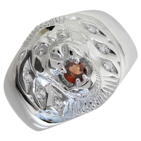 1月誕生石ガーネットを一粒使用した、プラチナ製のライオン(Lion)モチーフメンズリング(指輪)です。