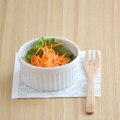 カフェスイーツの定番、スフレカップ。こちらは口径9cmサイズでミニサラダやヨーグルト、ゼリーにぴったり♪オーブン対応でふわふわスフレはもちろん、プリンなど手作りお菓子に大活躍◎
