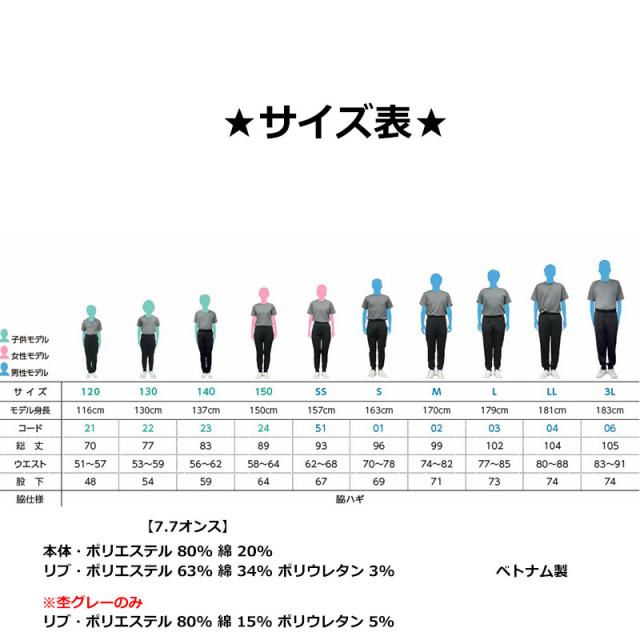 ※杢グレーのみ リブ:ポリエステル80% 綿15% ポリウレタン5%