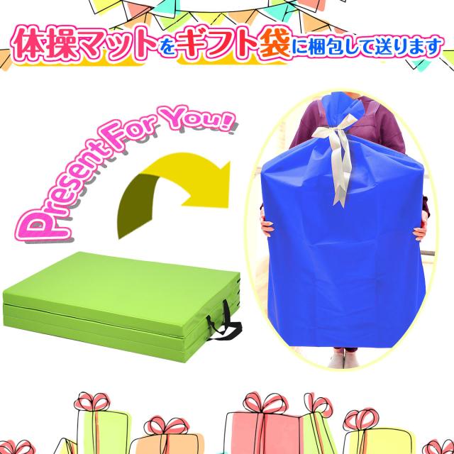 【特別な記念日、誕生日やイベントに】当店体操マット80サイズを包んだプレゼント用ギフトです。キレイなシルバーのリボンで結んで送ります。カラーは赤と青の二色をご用意しました。プレゼント袋に包装された状態で送るので、大切なあの人へそのまま贈り物ができます。