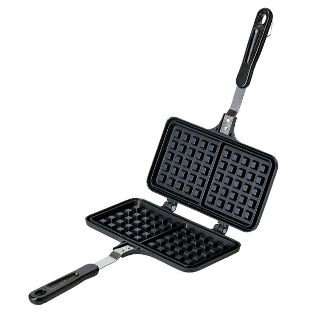 一度に二個のワッフルが焼ける、ガス火専用(Siセンサー付きコンロ不可)のワッフルメーカーです。生地を流して挟んで焼くだけで、ご家庭で簡単に美味しいワッフルが作れます。