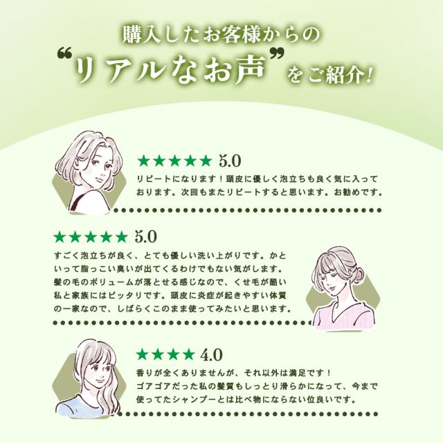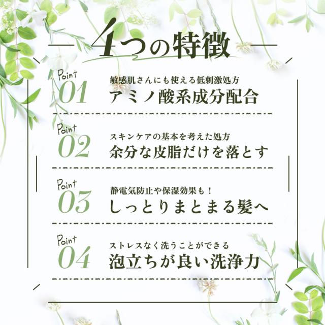 | ご使用方法 | 髪をよく濡らしてから、適量を髪全体にのばしシャンプーします。よくすすいでください。同じ要領で2度洗いします。 |