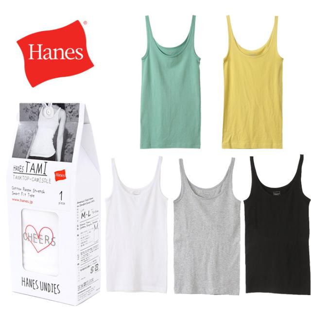 Hanes ヘインズ タンクトップ キャミソール ストレッチ オールシーズン 肌着 インナー トップス ナイトウェア 婦人 女性 女用 レディース 大人 ホワイト グレー ブラック イエロー オリーブ M フリーサイズ 通年 無地 シンプル スポーツ リラックス カジュアル 女性