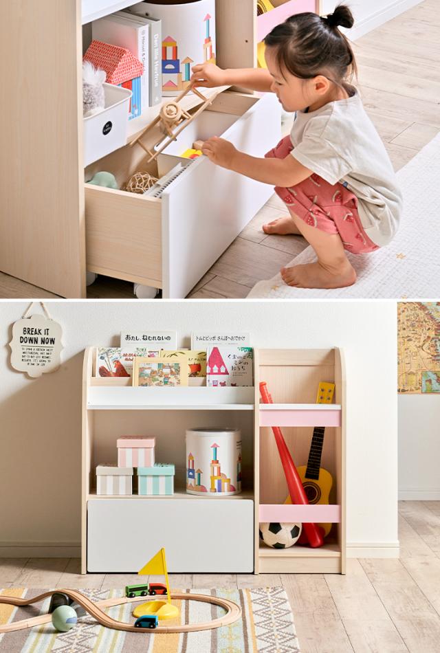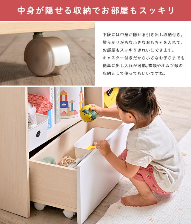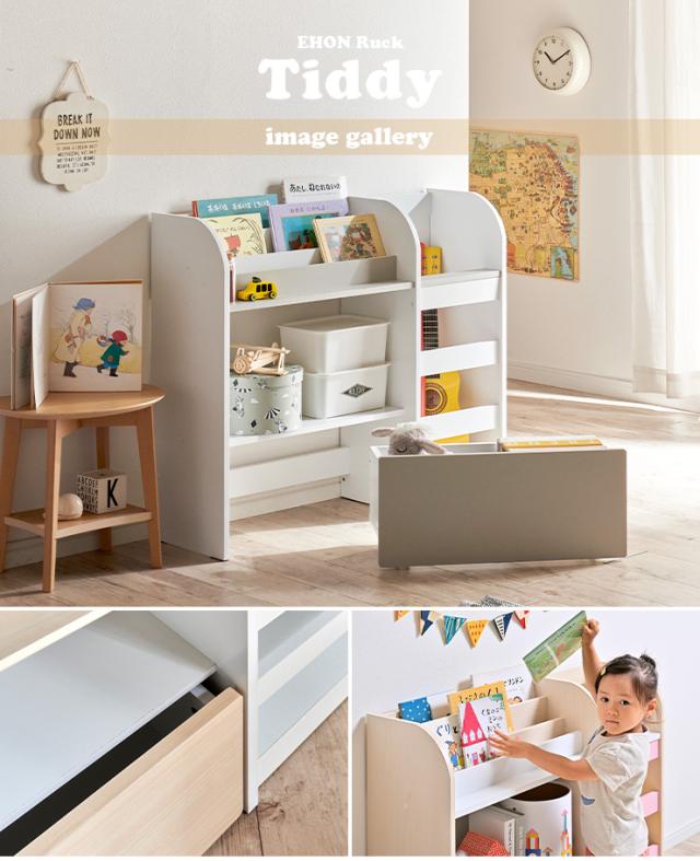 絵本ラック 絵本棚 Tiddy(ティディ) 3色対応 幅92cm おもちゃ箱 おもちゃ収納 本棚 ブックラック ブックシェルフ キッズラック ディスプレイラック 収納棚 お片付け おしゃれ 木製 子供部屋