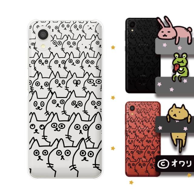 docomo Galaxy A22 5G SC-56B スマホ ケース ハード カバー オワリ 「迫りくるネコ・黒」 透明