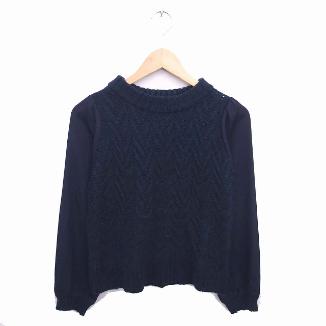 【中古】ミスティウーマン mysty woman ニット セーター ハイネック 袖切替 長袖 F ネイビー 紺 /TT30 レディース
