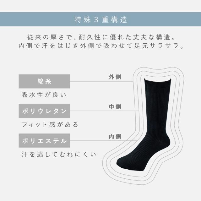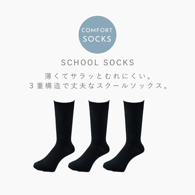 スクールにピッタリ!薄くて丈夫でサラッとムレない三重構造!往来のソックスと同じ厚さで、耐久性に優れた特殊三重構造。