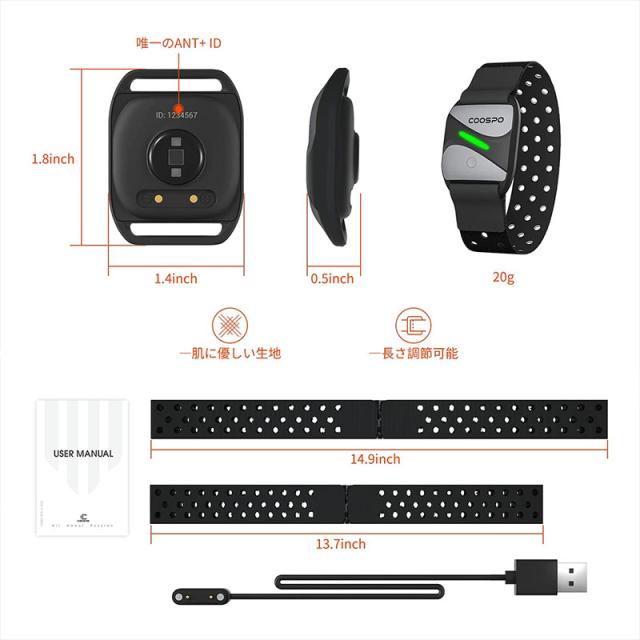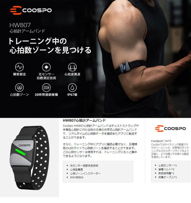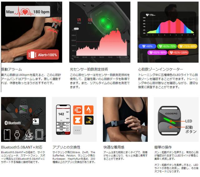 COOSPO HW807 心拍計アームバンド 心拍センサー 光学式 ハートレートモニター Bluetooth&ANT+対応 IP67防水 心拍数ゾーンLEDインジケータライト Strava、Zwift、Wahoo用 【正規品】