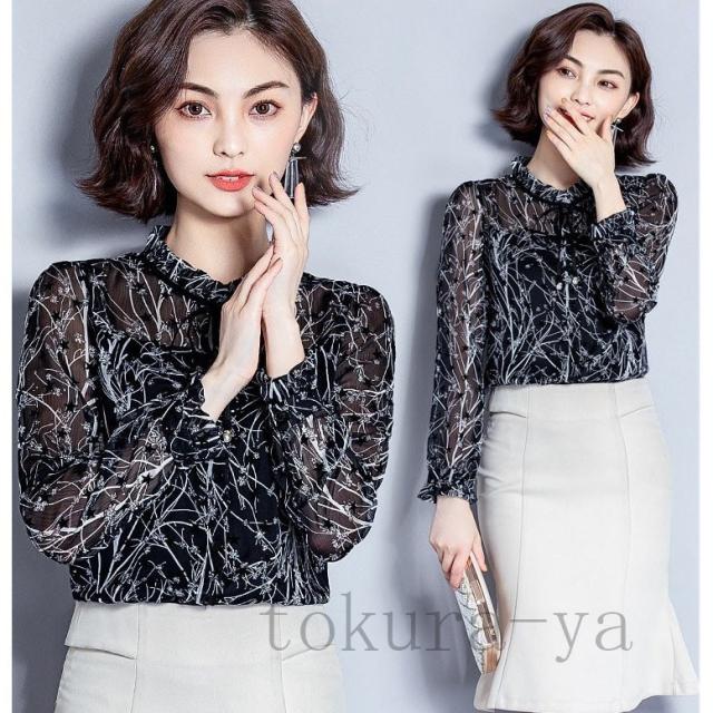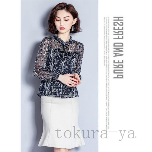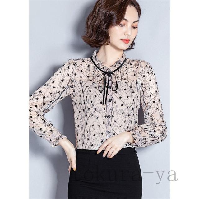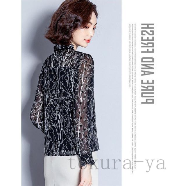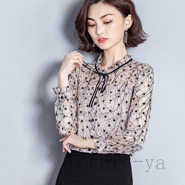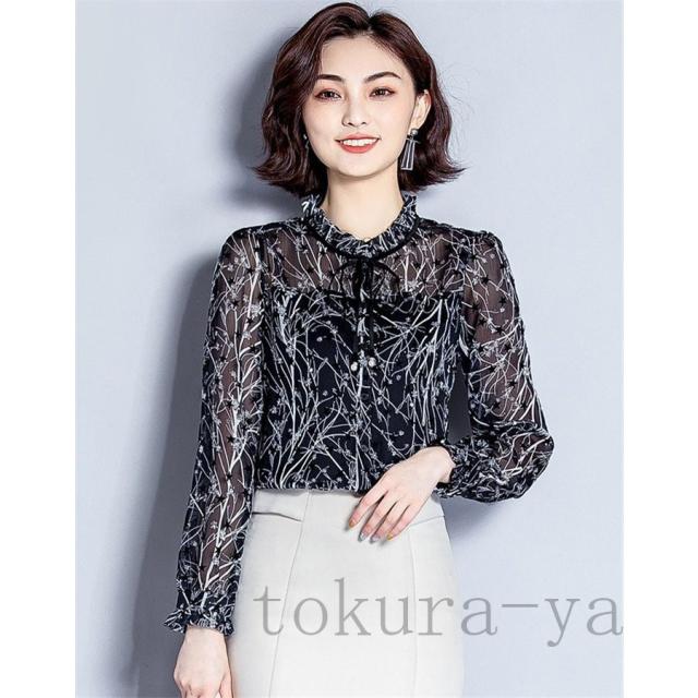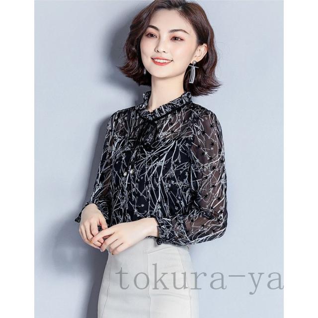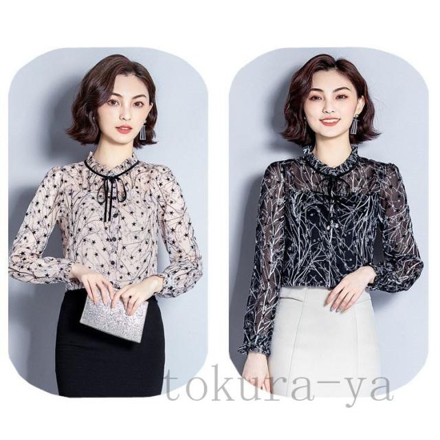 ブラウス レディース おしゃれ オフィス トップス シャツ 長袖 春秋 シフォン 花柄 シンプル 40代 きれいめ 大きいサイズ フォーマル 通勤 上品 着痩せ OL 新品