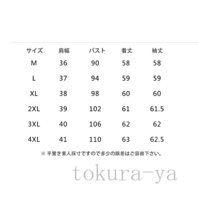 | サイズについての説明 | サイズ:S M L XL 2XL 3XL 4XL |
