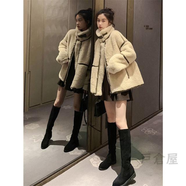 ボアジャケット 韓国 ボアブルゾン フリース もこもこ 暖かい 防寒 カジュアル あったか ふわふわ 防寒着 レディース ショートコート
