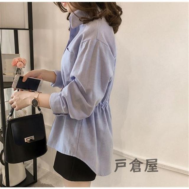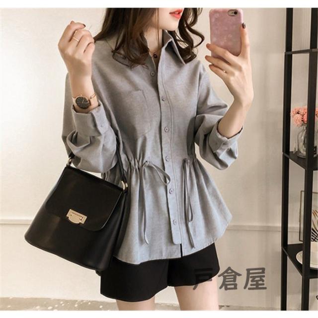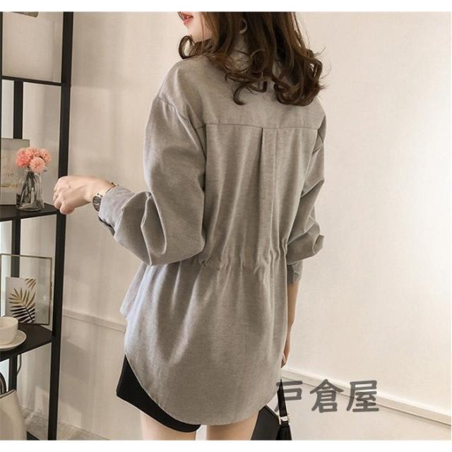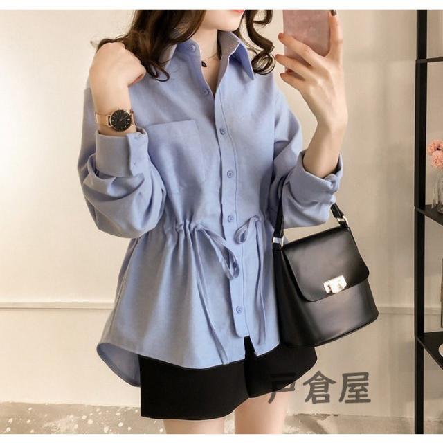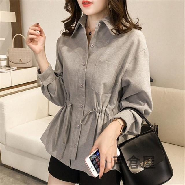 シャツブラウス 長袖 レディース シャツ ブラウス トップス ギャザー 大きいサイズ ウエストひも オフィス 通勤 体型カバー 秋 コーデ ポイント消化 20代 30代