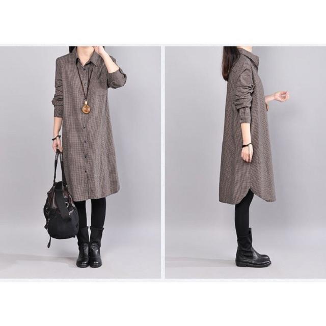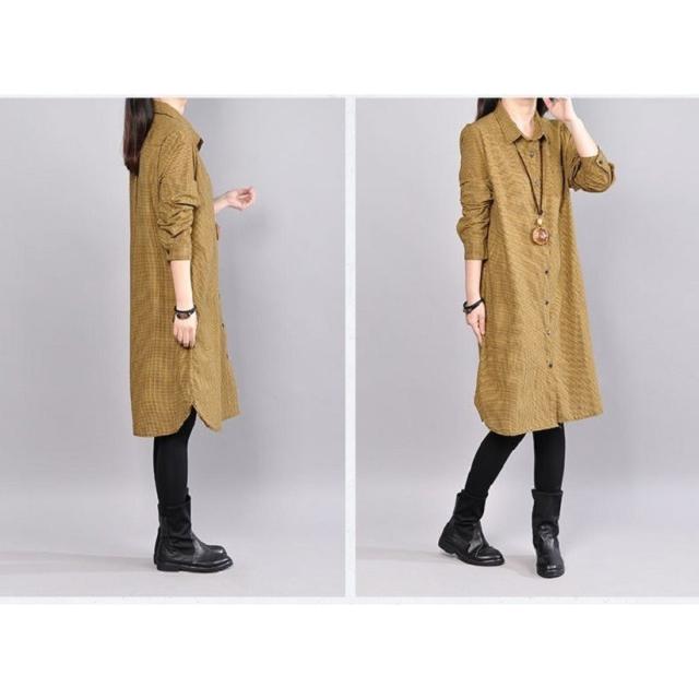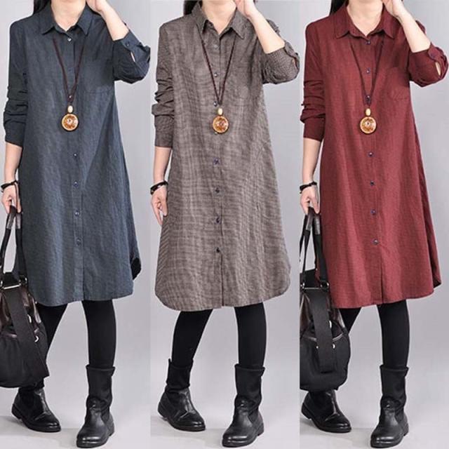 シャツワンピース 長袖 膝丈 秋色 ギンガムチェック レディースファッション ワンピース お洒落 グレー イエロー レッド