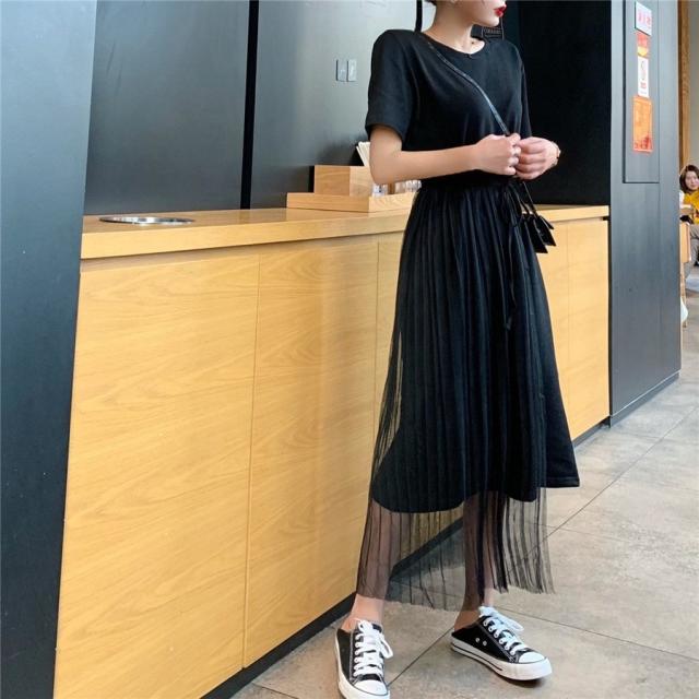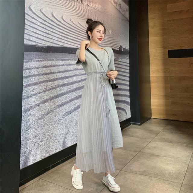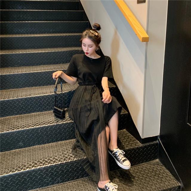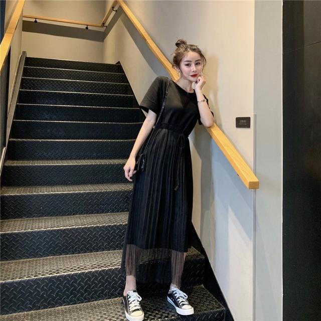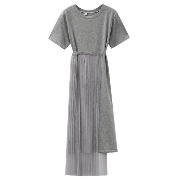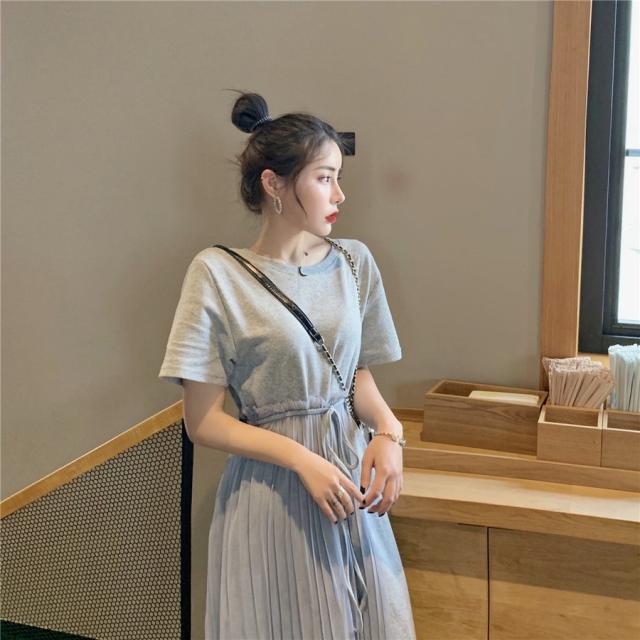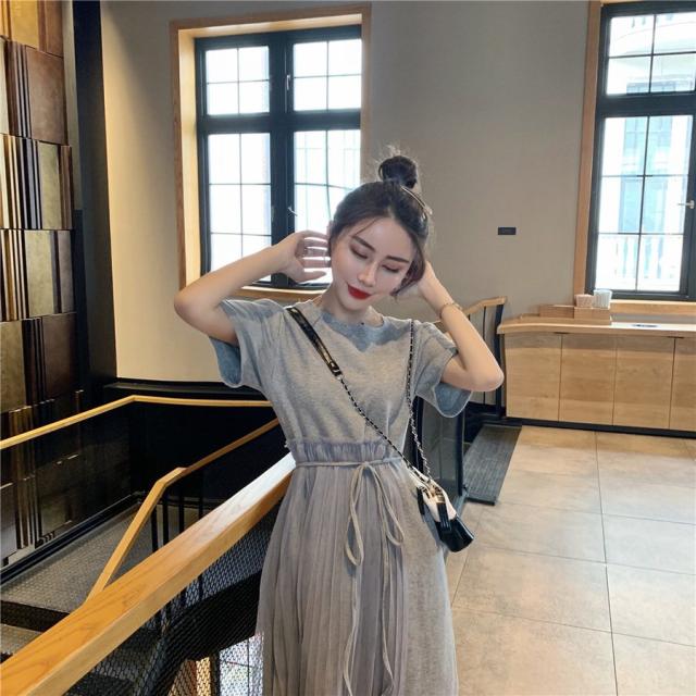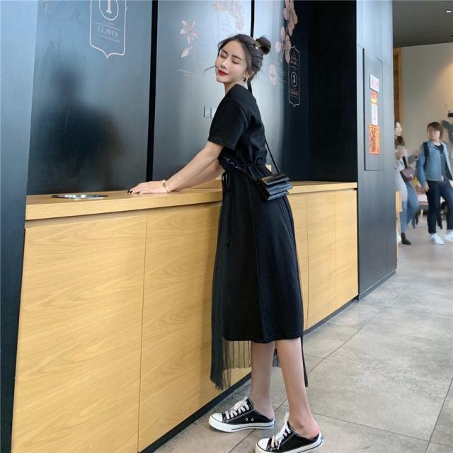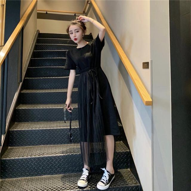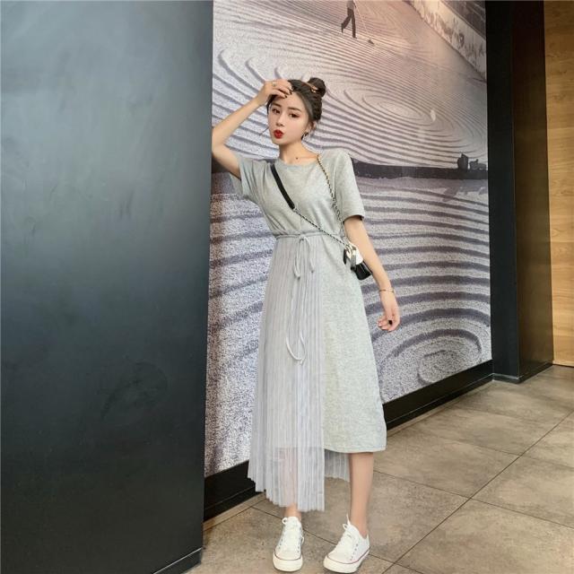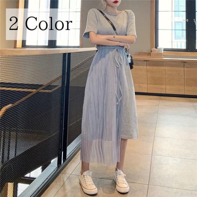 ワンピース フレア レディース 女性 女子 膝丈 ミディアム ハイウエスト ラウンドネック 腰紐 アシンメトリー レース シンプル 無地 おしゃれ 着