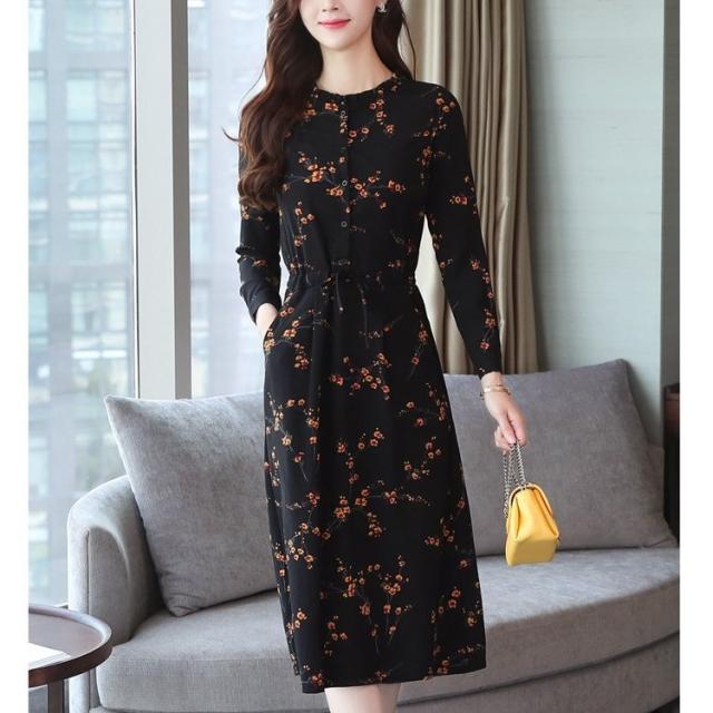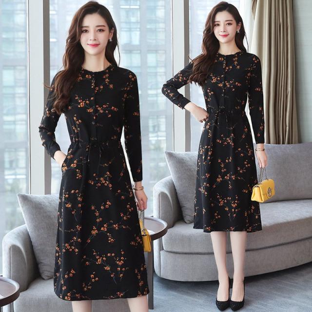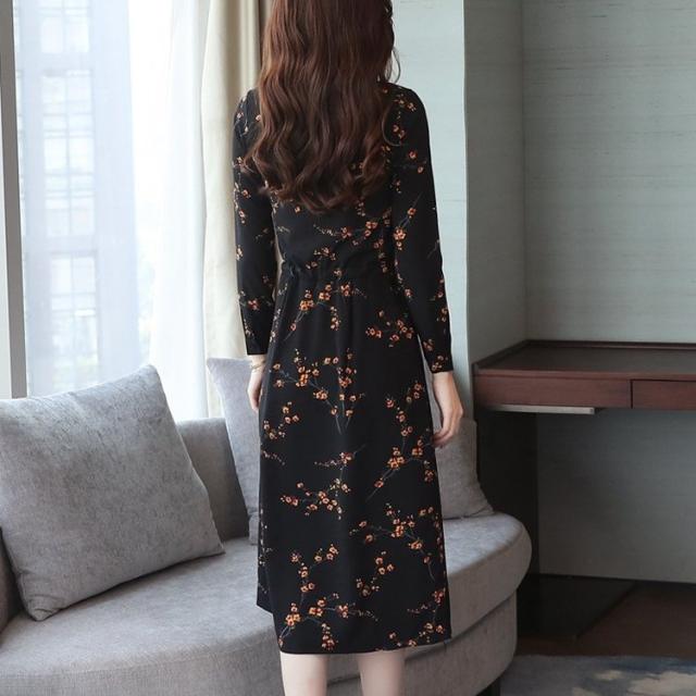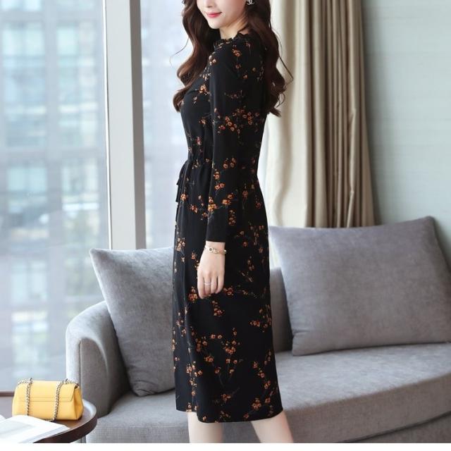 ワンピース レディース 長袖 ひざ丈 膝丈 花柄 フレア フレアワンピ シック おしゃれ かわいい 上品 きれいめ 大人 春秋冬