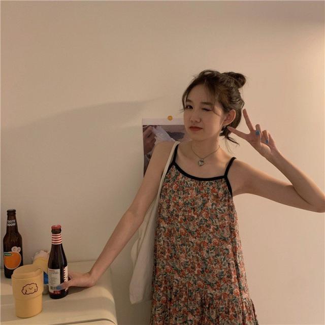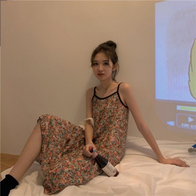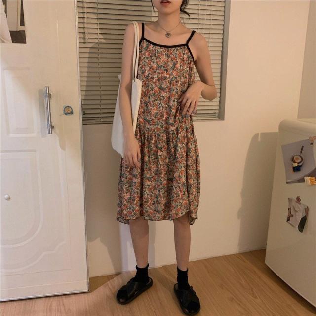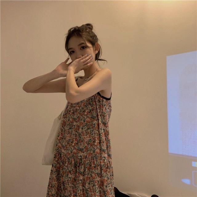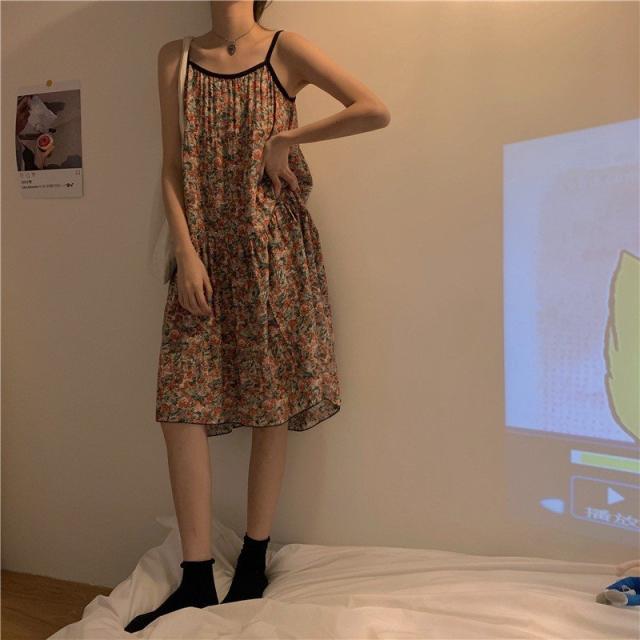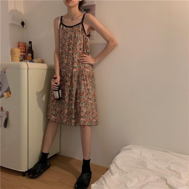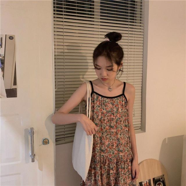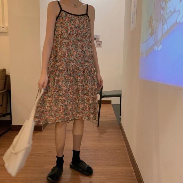 キャミソールワンピース キャミワンピ レディース 膝丈 ノースリーブ Aライン フレア 小花 おしゃれ かわいい 袖無し 女性 夏 ビーチ レトロ調