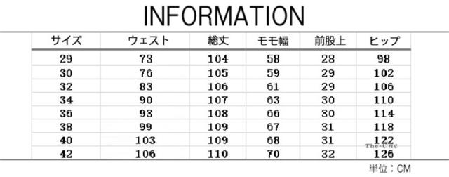 | サイズ | 29 30 32 34 36 38 40 42 |