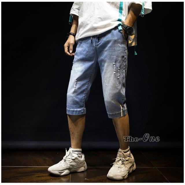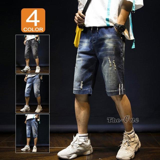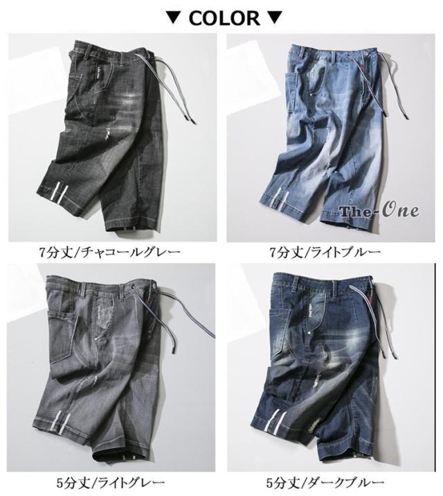 ハーフパンツ デニム メンズ 半ズボン 五分丈 七分丈 ダメージ ウォッシュ お兄系 ボトムス 夏