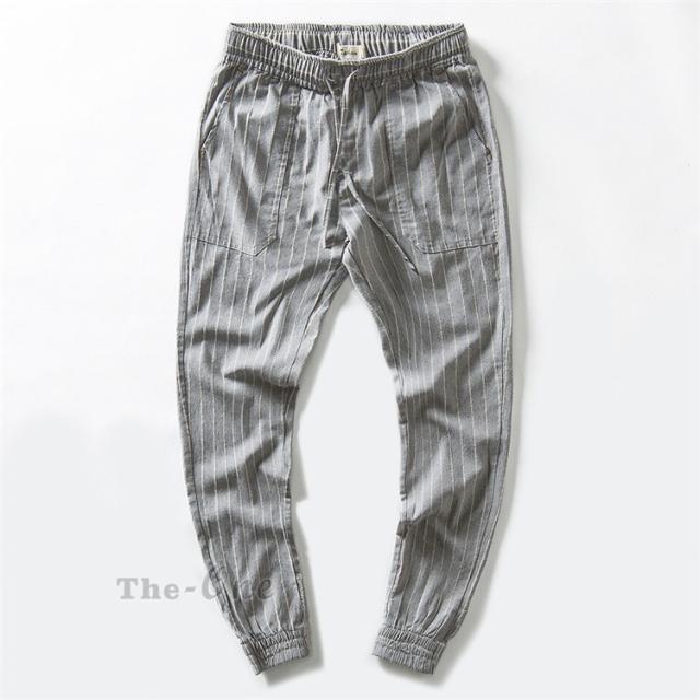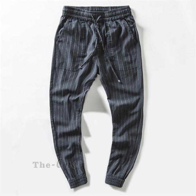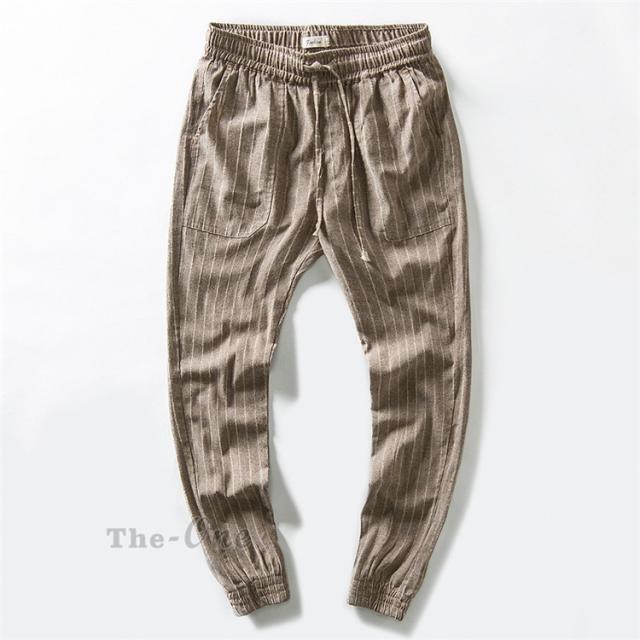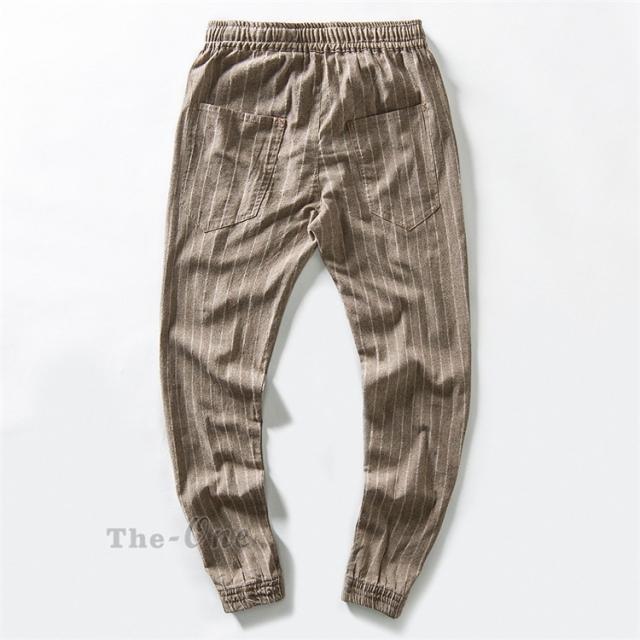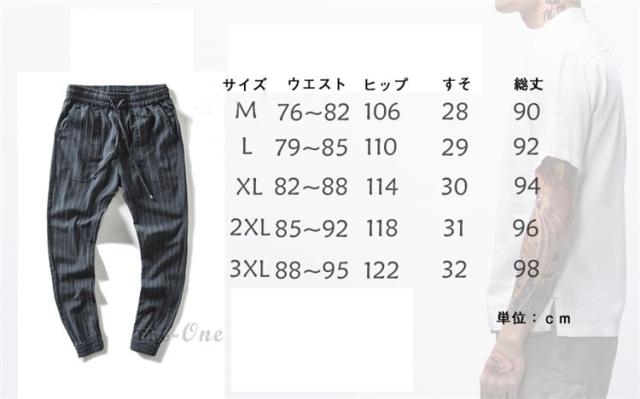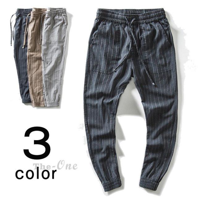 テーパードパンツ メンズ リネンパンツ ロング丈 ストライプ パンツ チノパン ボトムス カジュアルパンツ