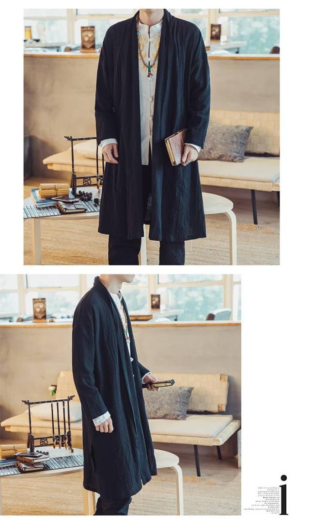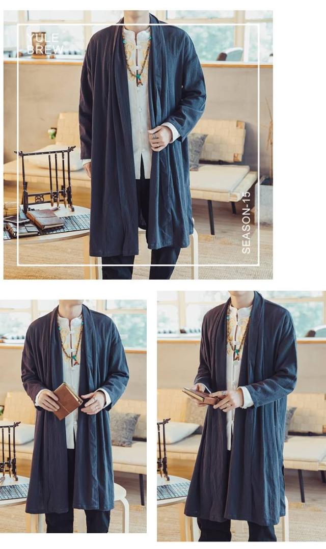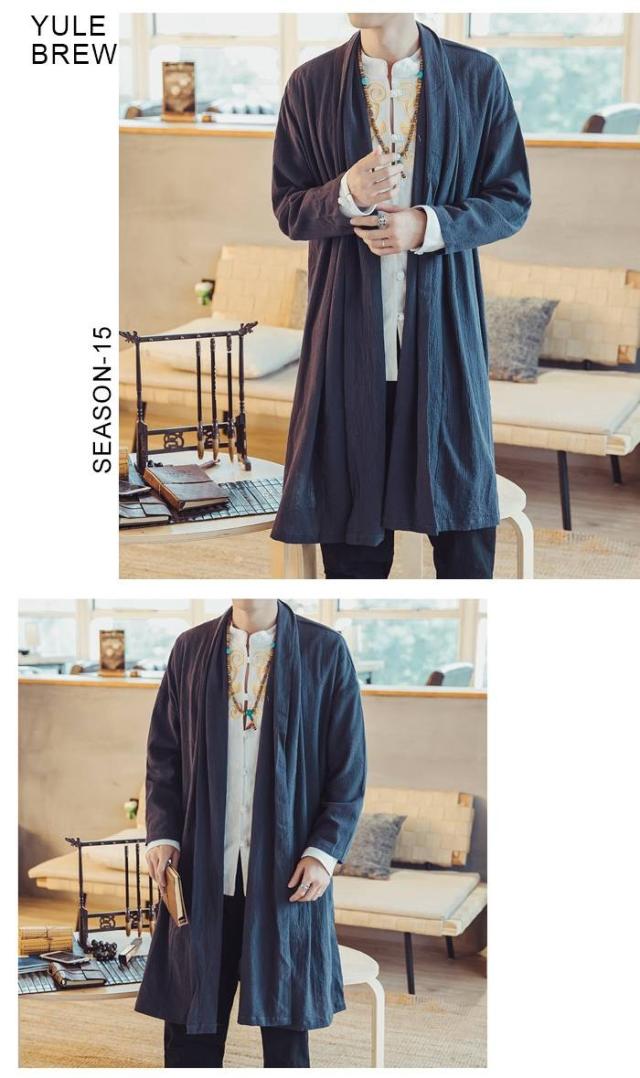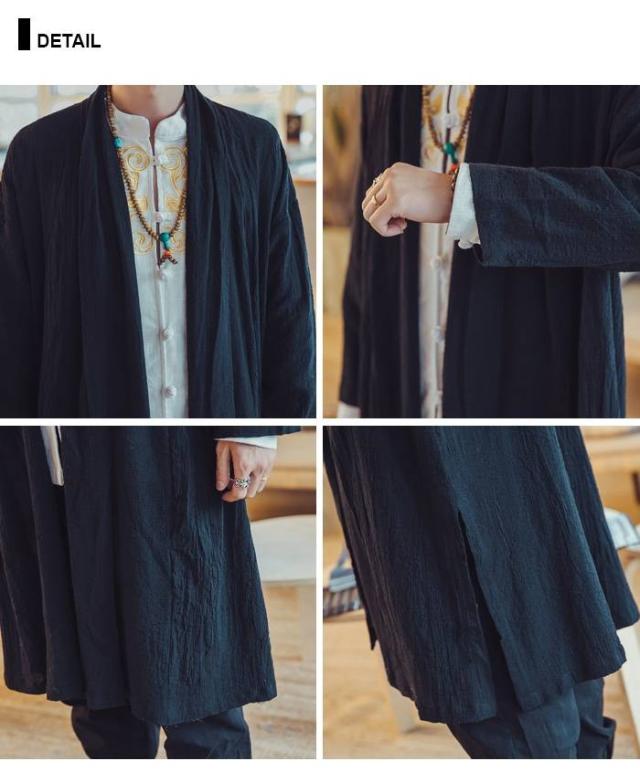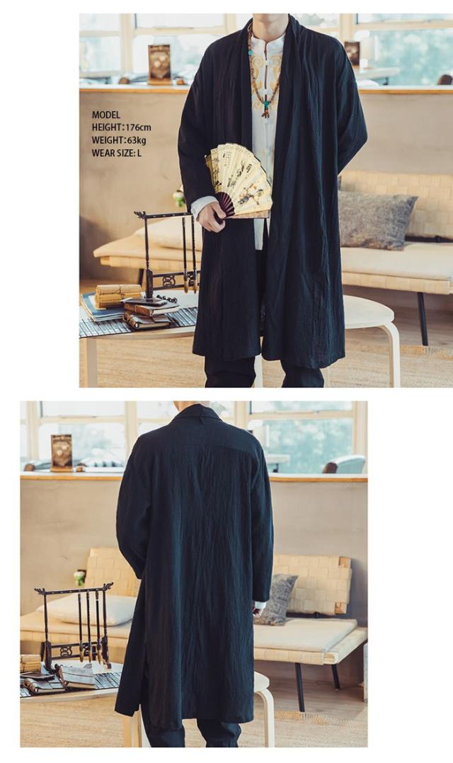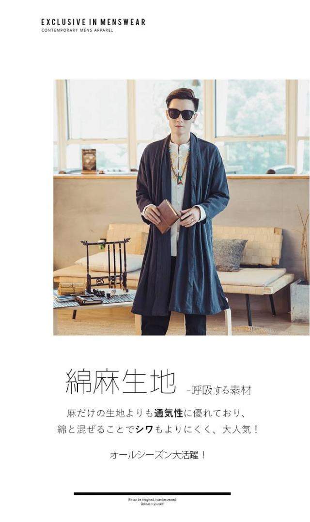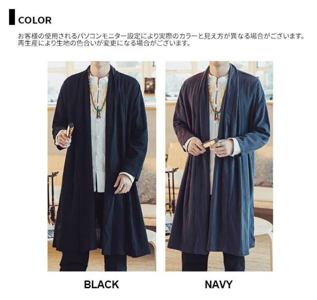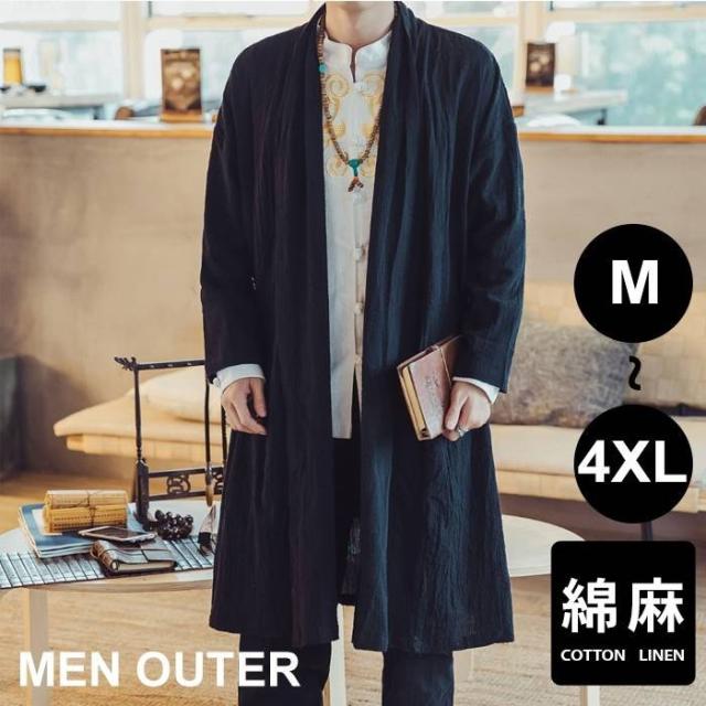 メンズ アウター リネン コットンリネン 麻混 綿麻 麻カーデ 変形 変形カーデ ロングカーデ コットン モード エスニック アジアン 無地 大きいサイズ 春服 夏服