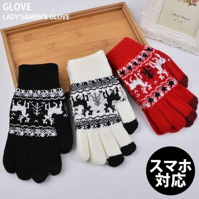 タッチパネル対応手袋 レディース メンズ 手袋 スマートフォン対応 スマホ対応 ノルディック柄 防寒 カジュアル ニット 秋冬