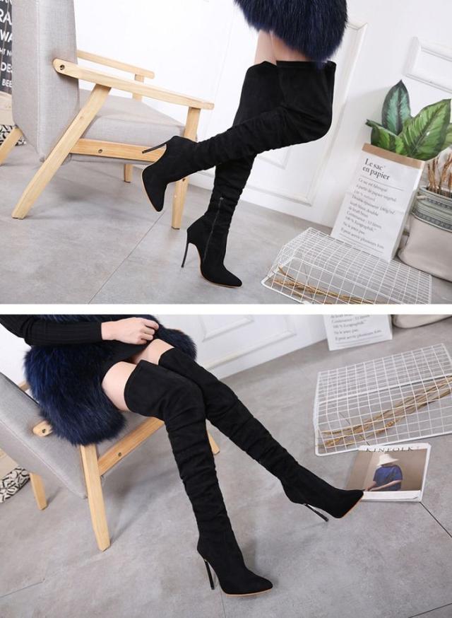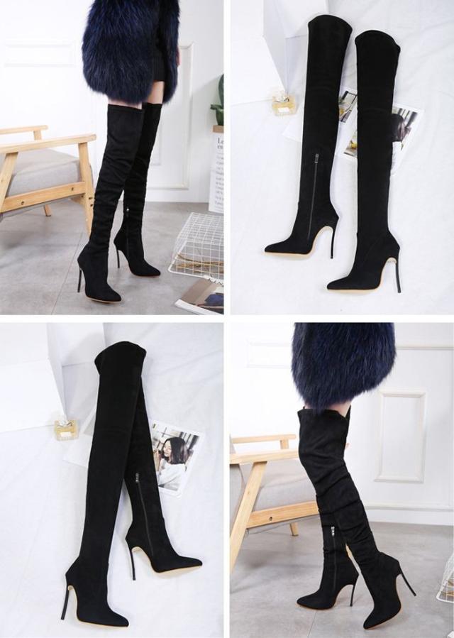 ニーハイブーツ レディース サイハイブーツ シューズ 靴 ロングブーツ ピンヒール ブラック 新作 秋冬 秋物 冬物