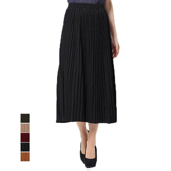 スカート 春夏 スカート プリーツスカート ロング 無地 ウエストゴム ラメ ミモレ丈 ボトムス レディース