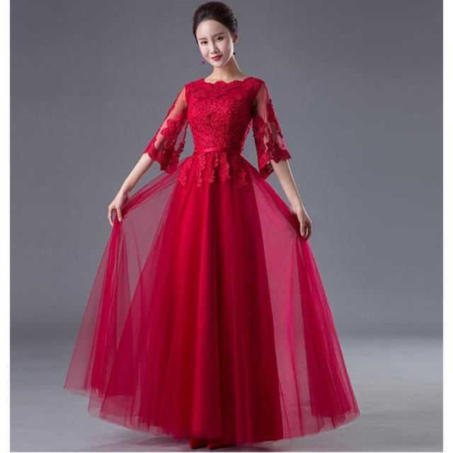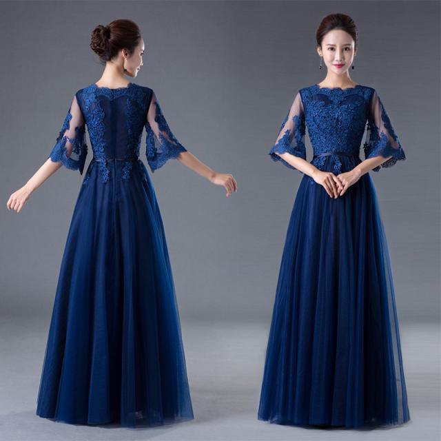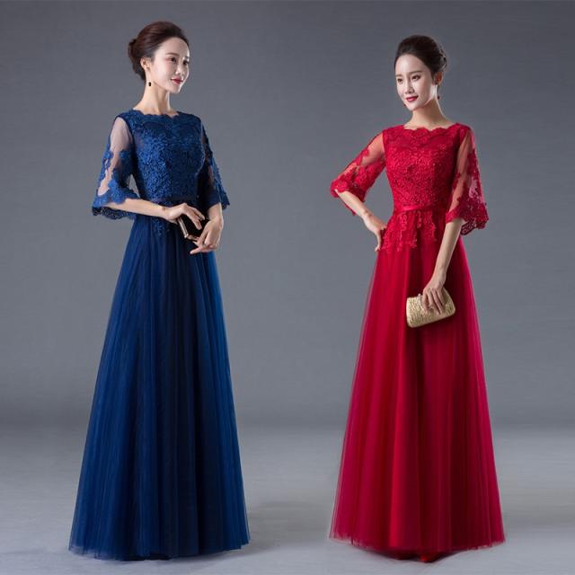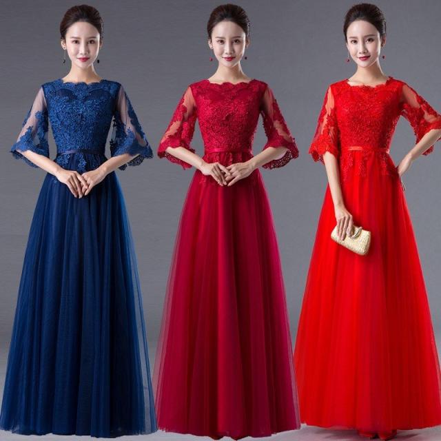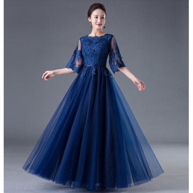 パーティードレス ロングドレス ミモレ丈 花柄レース マキシ丈 演奏会用 結婚式 大きいサイズ 合唱衣装 ワンピース 30代40代50代 着痩せ オシャレ