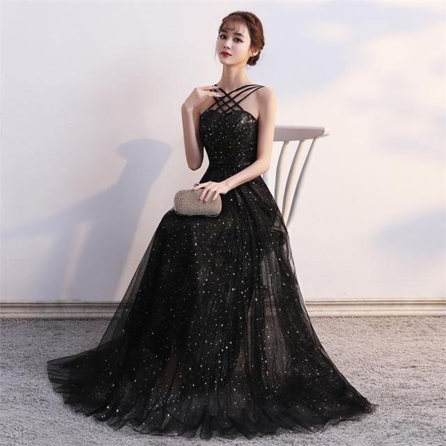 ウエディングドレス 二次会 社交ダンス衣装 袖なし 大きいサイズ 花嫁 黒 ブラック ロングドレス 結婚式 パーティードレス 演奏会 フォーマルドレス 披露宴
