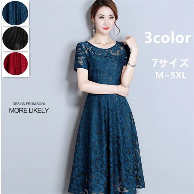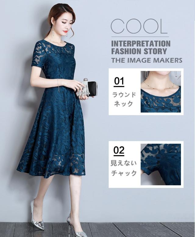 ドレス レディース 社交ダンス パーティードレス レース ワンピース フォーマルドレス 二次会 膝丈 ドレス 半袖 結婚式 ウェディング 30代 40代 同窓会 謝恩会