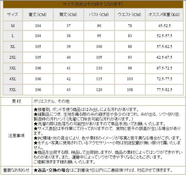 | サイズについての説明 | サイズ M/L/XL/2XL/3XL/4XL/5XL |