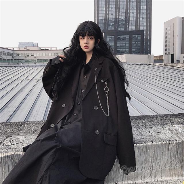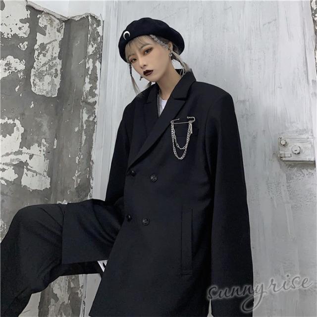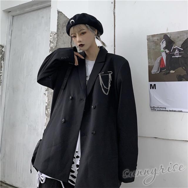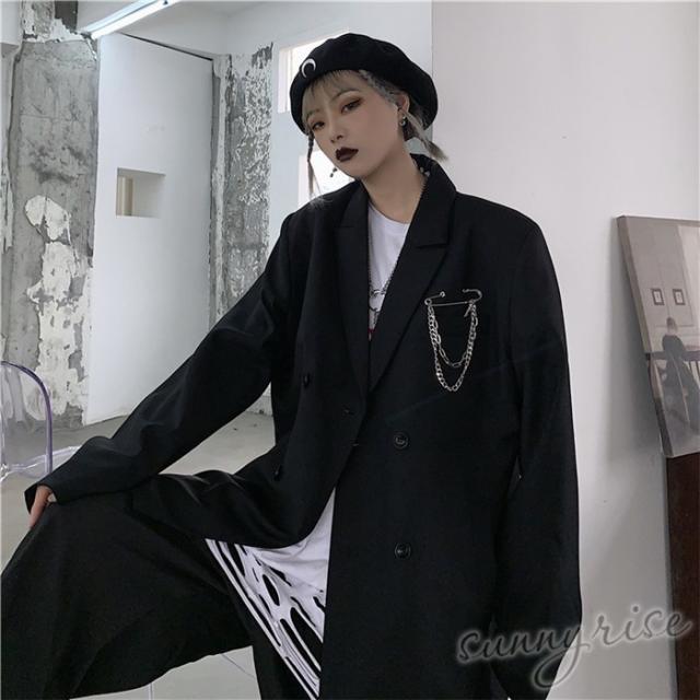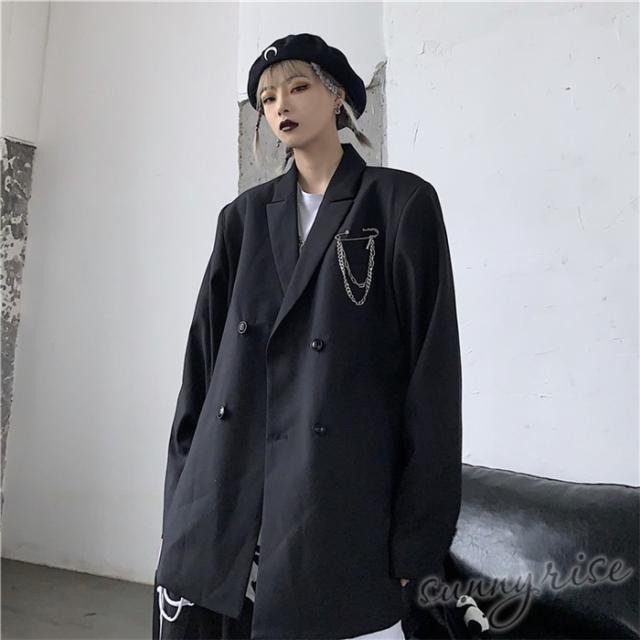 レディース ダンス 衣装 無地 テーラード ジャケット ダブルブレスト ブレザー ブラウン原宿系 奇抜 派手 個性的 コスチューム ヒップホップ ビッグシルエット