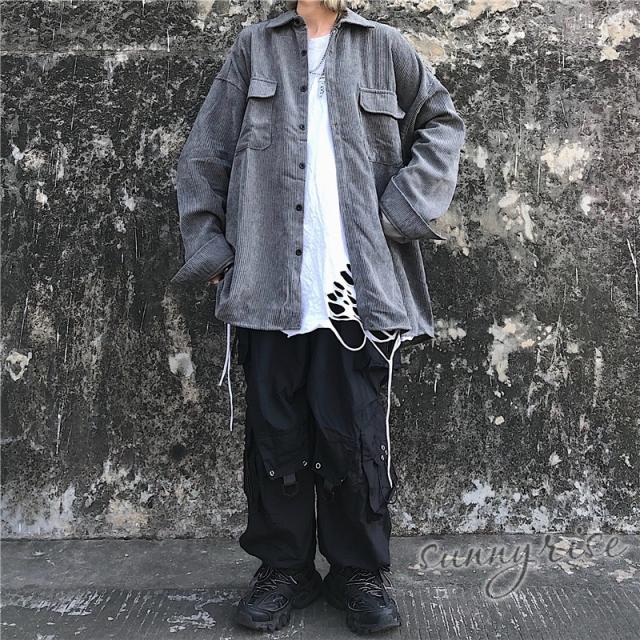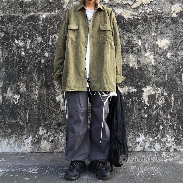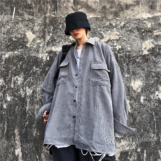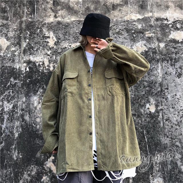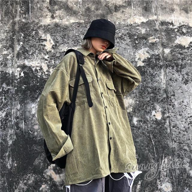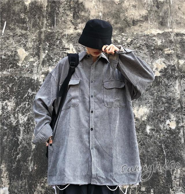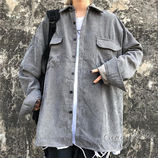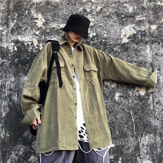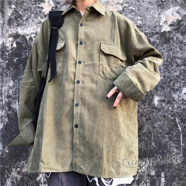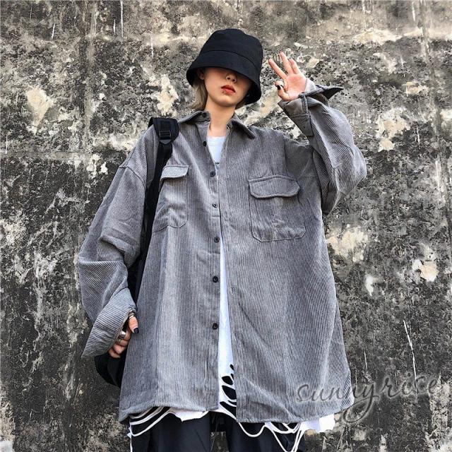レディース シャツ コーデュロイ 無地 ビッグシルエット 大きいサイズ シルエット ユニセックス ストリート系 ダンス 衣装 ヒップホップ 原宿系 韓国系 個性的