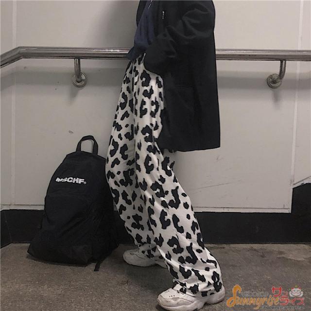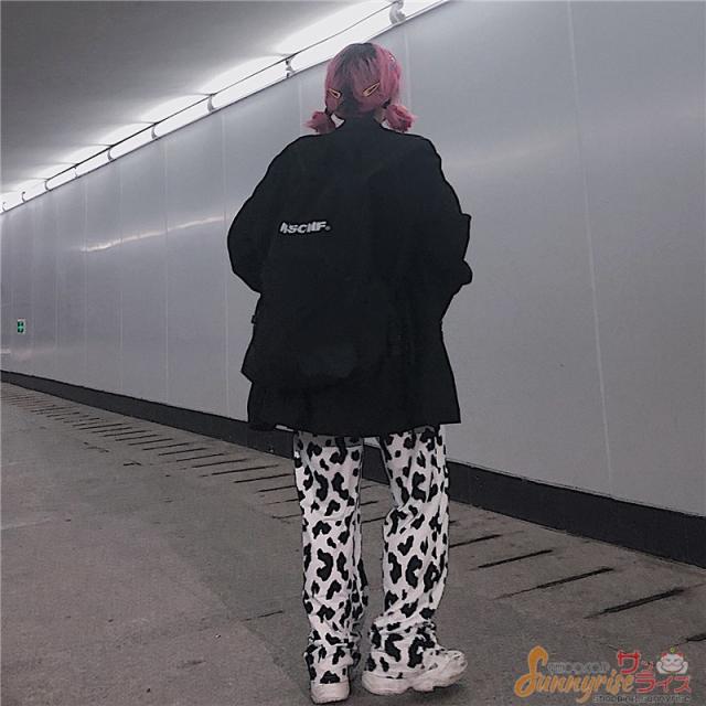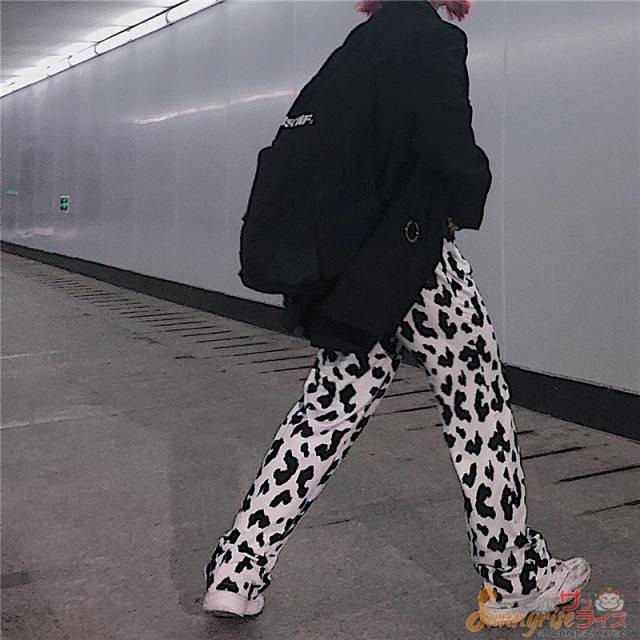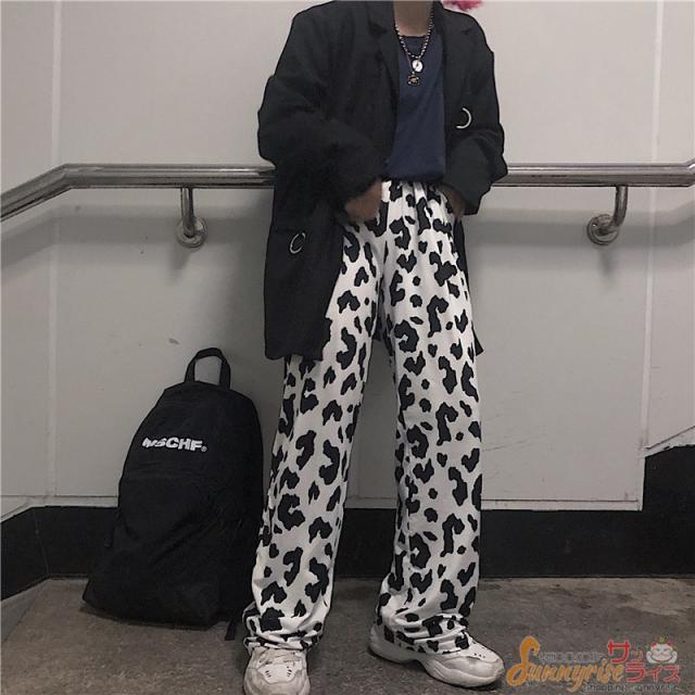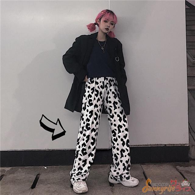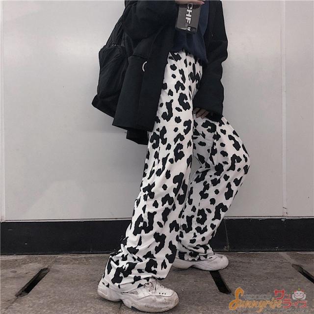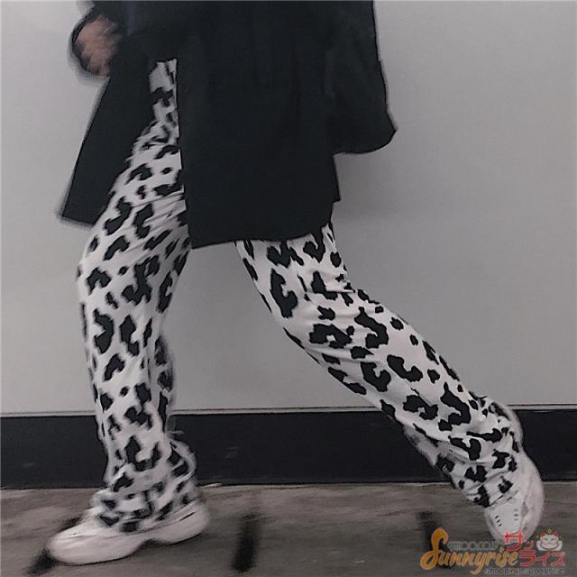レディース ダンス 衣装 ダルメシアン柄 白黒 ワイドパンツ ボトムス ヒップホップ コスチューム 個性的 原宿系 ステージ衣装 練習着 演出服