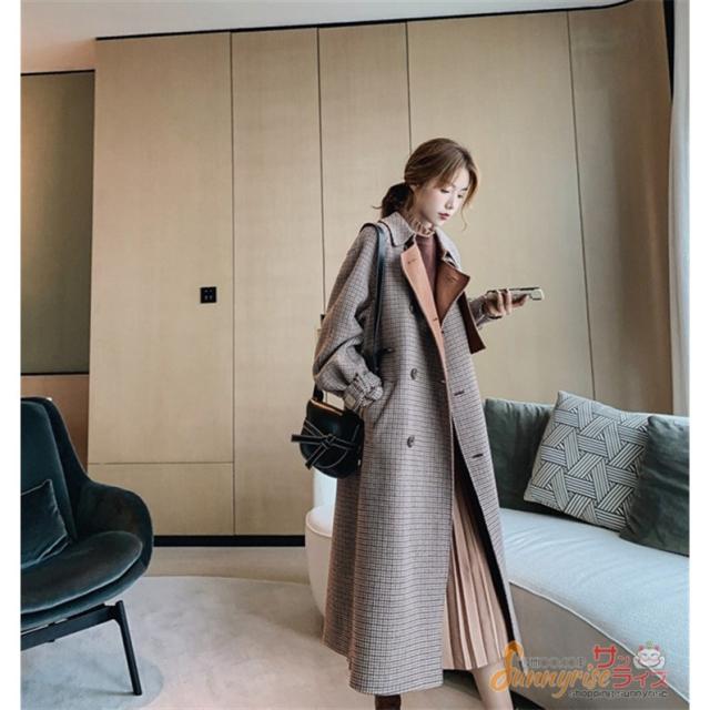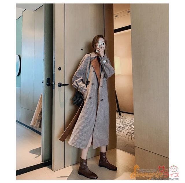 ラシャコート コート ジャケット レデイース 秋冬 40代 オシャレ チェックきれいめ 長袖コート ロング丈コート カジュアルウエア 上品 着痩せ 大人 2色