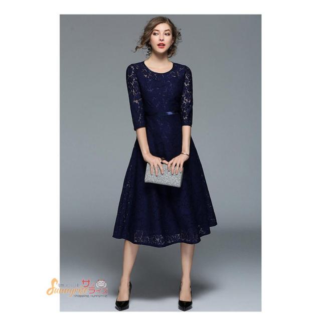 ワンピース レディース パーティードレス 結婚式 七分丈 ワンピース パーティードレス ロング ウエディング ドレス 二次会 花嫁 お呼ばれ