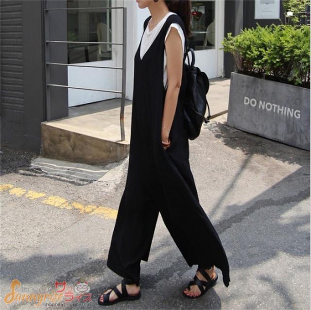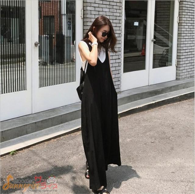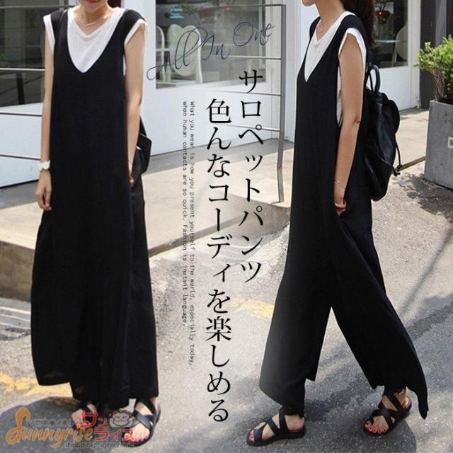 サロペット オールインワン レディース サロペットパンツ オールインワン パンツドレス オーバーオール ワイドパンツ ガウチョパンツ ゆったり 着痩せ