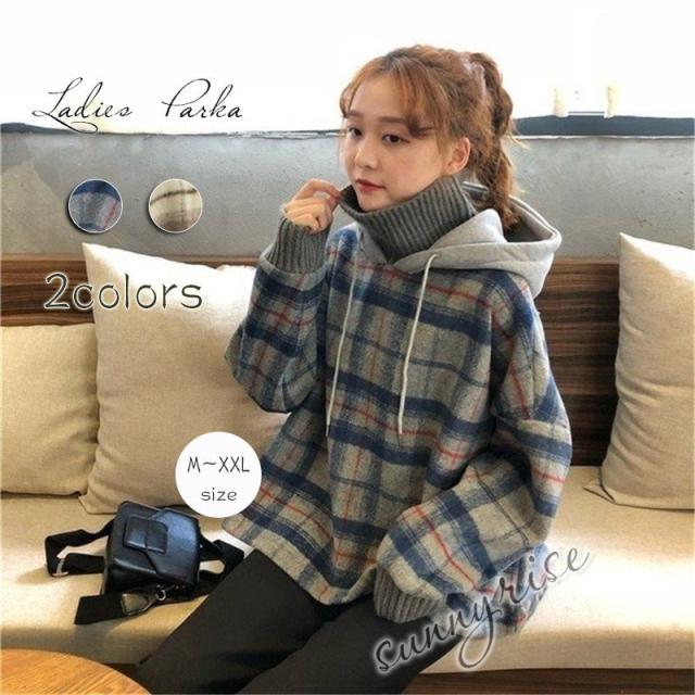 ボアパーカー レディース チェック柄 オシャレ パーカ 一点で楽 フード付き 韓国風パーカー 40代 パーカー 長袖 ゆったり 裏起毛 トップス