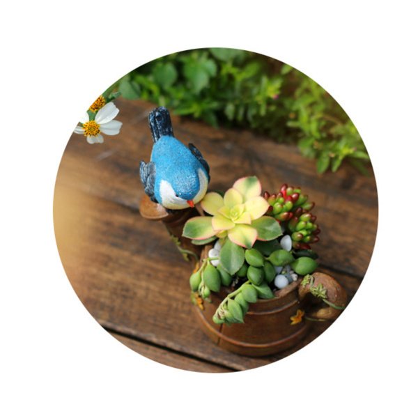 ミニチュア鳥と花の鉢ドールハウス盆栽ガーデン多肉植物錆
