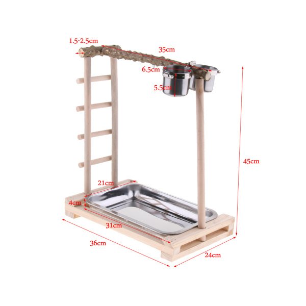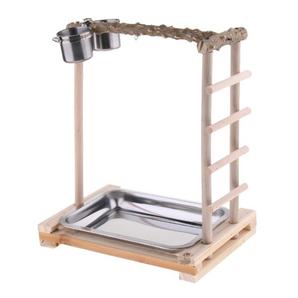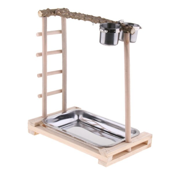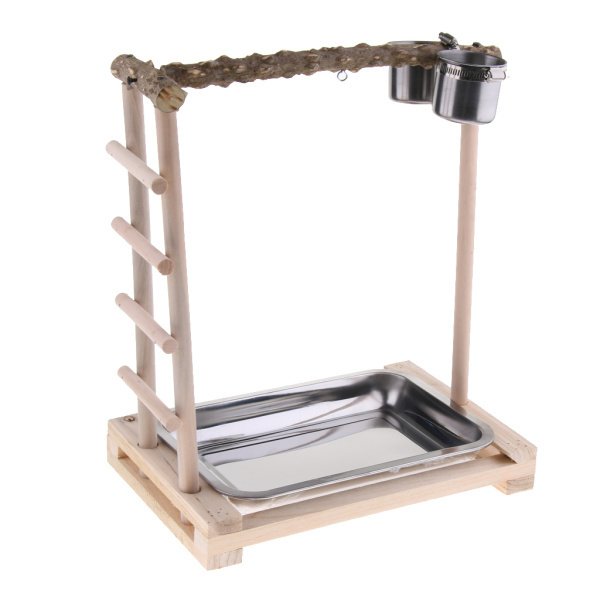 オウムのおもちゃ、遊び場の鳥の棚のペッパーウッドスタンドをフィーダーで登る