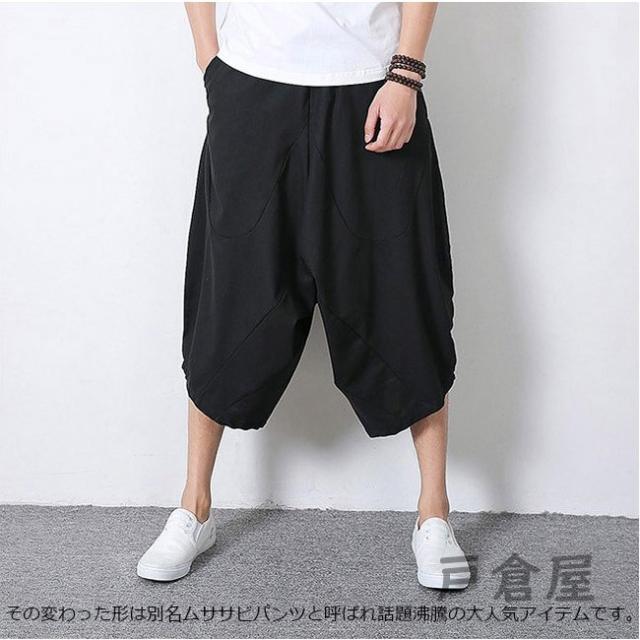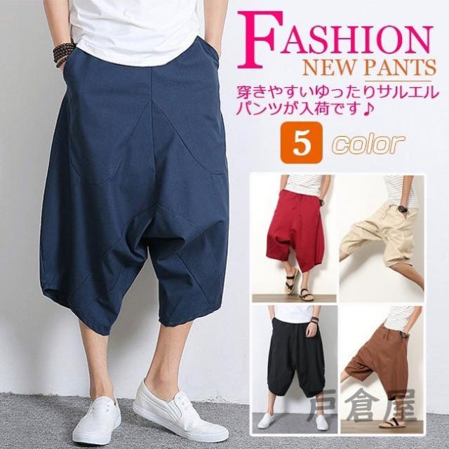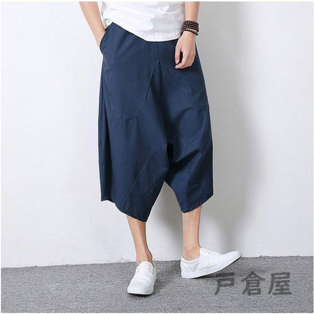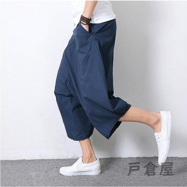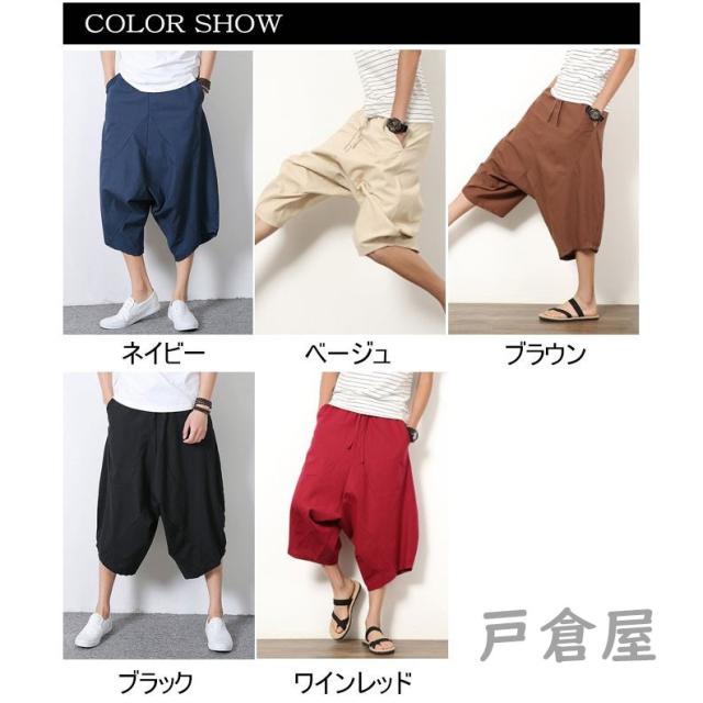 サルエルパンツ リネンパンツ 7分丈パンツ クロップドパンツ カジュアルパンツ メンズパンツ ゆったり リラックス ストレスフリー 体型カバー