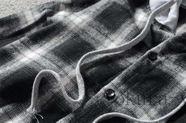 チェックシャツ メンズ 韓国 ファッション フードシャツ フード付きシャツ パーカー チェック柄 長袖シャツ ネルシャツ 2020