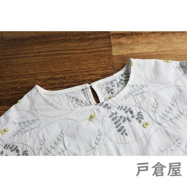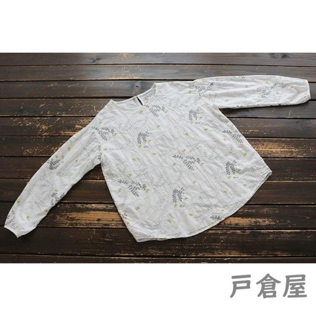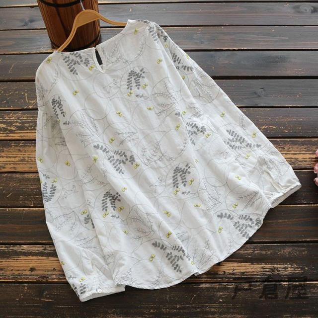 シャツ ブラウス レディース きれいめ 40代 春 大きいサイズ ボタニカル柄 刺繍 丸首 長袖 プルオーバー トップス