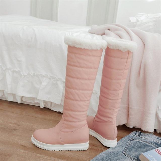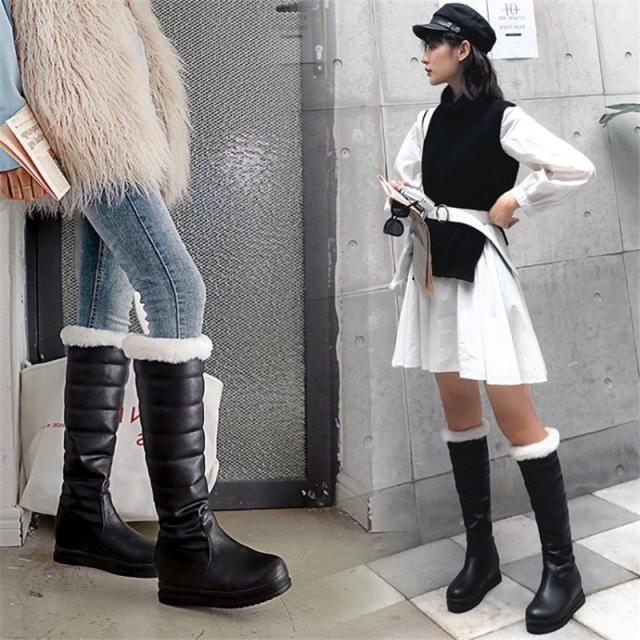 ロングブーツレディ ースブーツ/裏起毛ロングブーツ韓国風可愛いロングブーツ可愛い厚底パンプス長靴スリッポン防寒 保温大きいサイズ おしゃれブーツ秋冬用